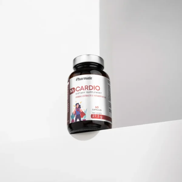 MyCardio to suplement diety zawierający ekstrakty roślinne oraz witaminy B1 i B2, przeznaczony do uzupełniania codziennej diety osób dbających o układ krążenia i metabolizm energetyczny.